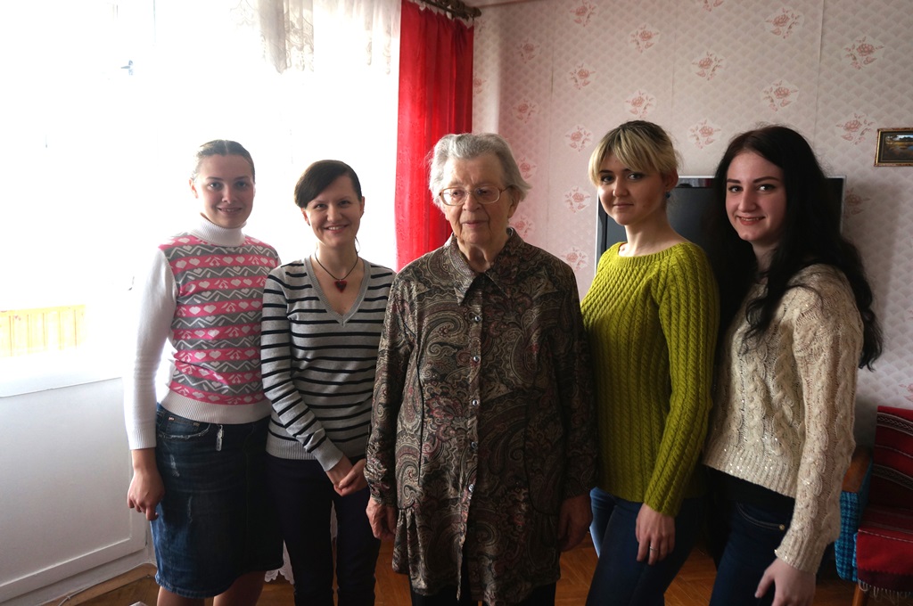Студентки группы ГУ-31 накануне Дня Победы навестили Ветерана Великой Отечественной войны Марию Петровну Мельниченко и поздравили её с праздником.