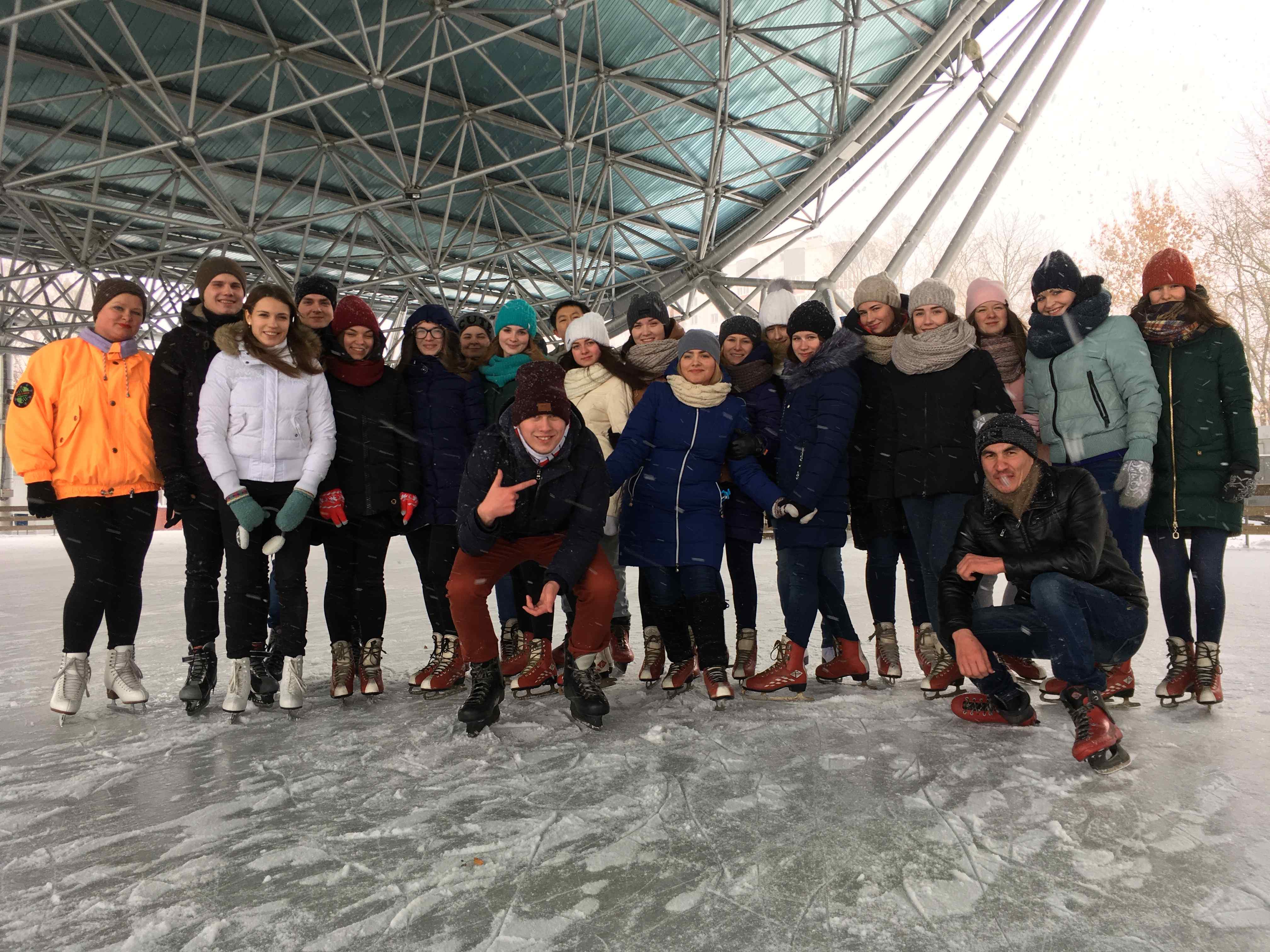 Отличное настроение, предновогодняя атмосфера, искрящийся лед под коньками – и обычный выходной превращается в настоящий праздник. Ну а если упадешь – то это не страшно, ведь рядом верные друзья, которые всегда протянут руку помощи. Студенты гр.ФК-31 получили заряд оптимизма на ледовой площадке около гостиницы Турист, который очень пригодится, ведь впереди – сессия и окончание первого учебного семестра.