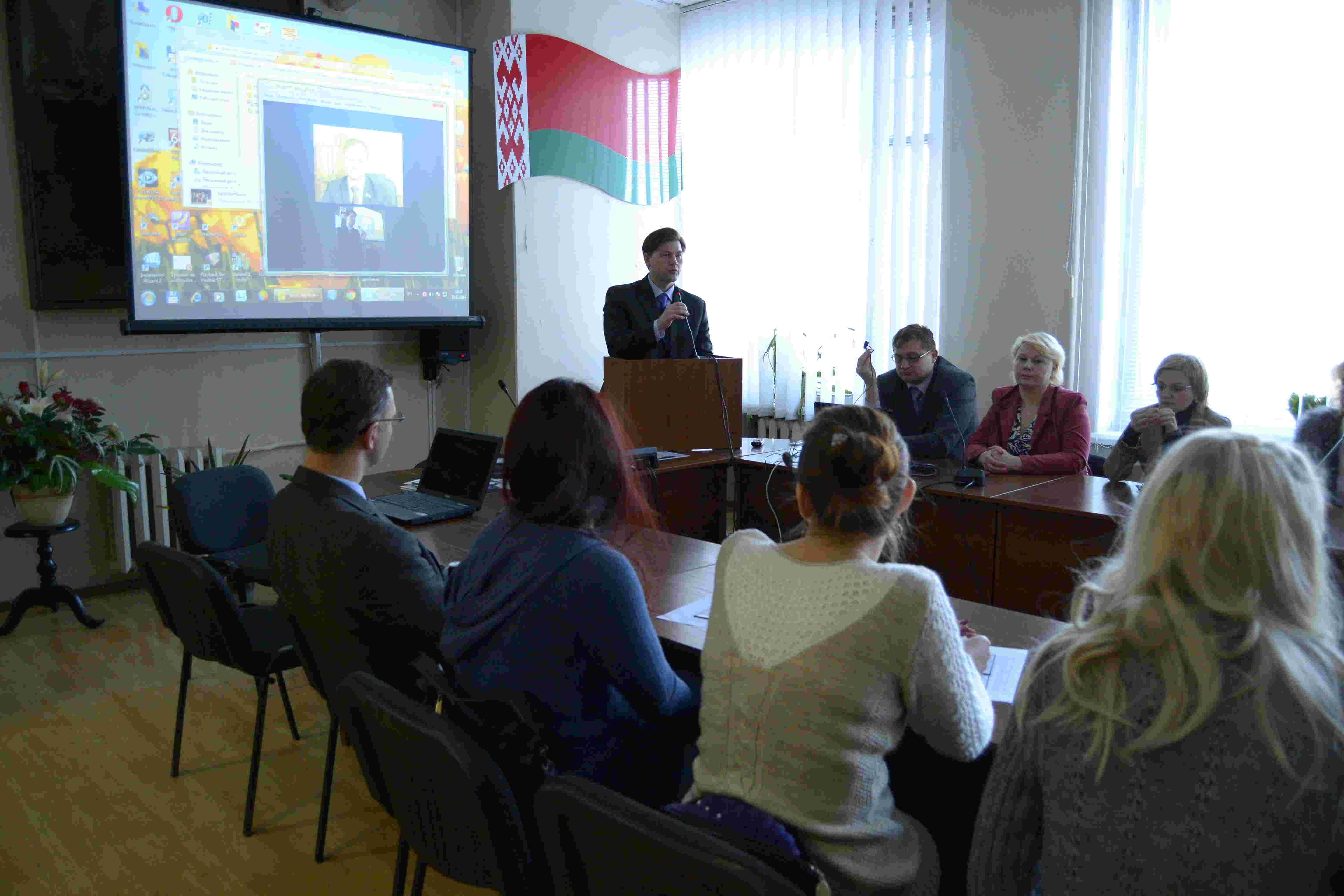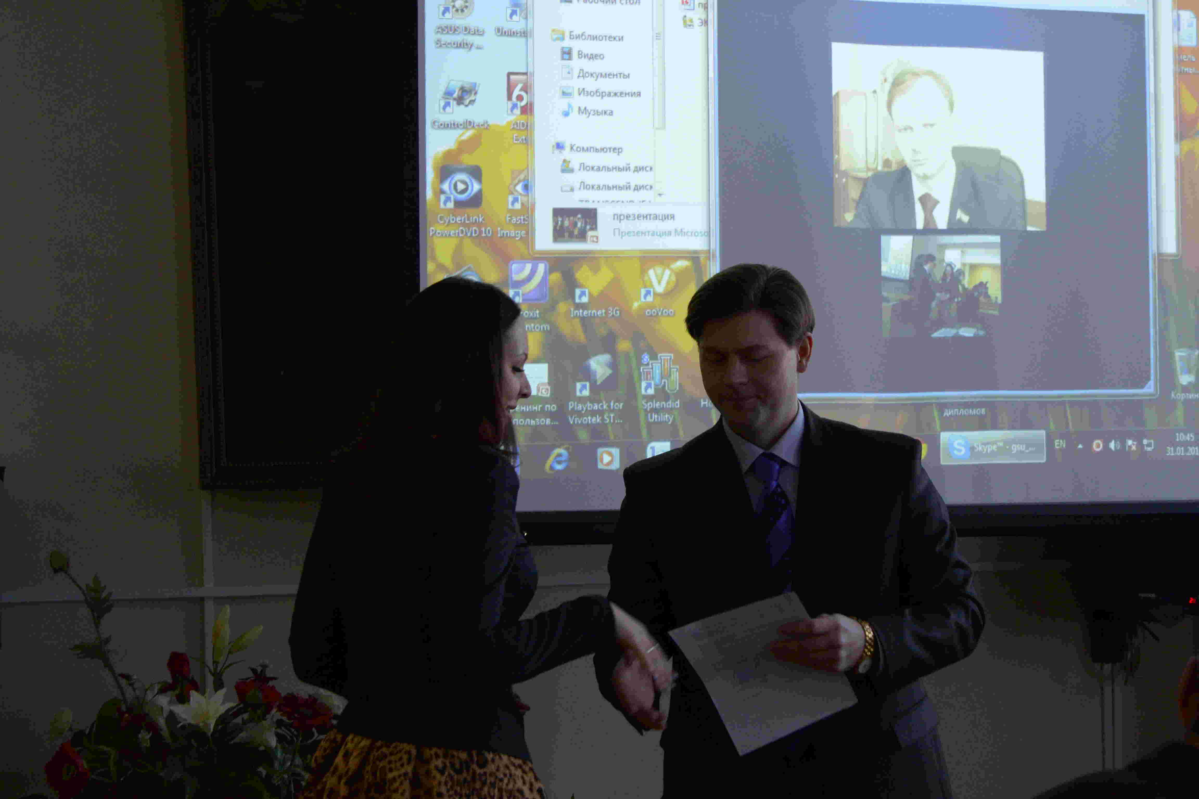 Приятным сюрпризом для выпускников и их родителей стало поздравление депутата Палаты представителей Национального собрания Республики Беларусь, в прошлом декана экономического факультета — Щепова Владислава Александровича, принявшего самое непосредственное участие в становлении молодых специалистов зимнего выпуска 2014 года и на собственном примере воплотившего в жизнь девиз нашего факультета: «Через образование – к успеху!». В режиме реального времени был организован телемост, который связал столицу нашей республики и родной альма-матер, который в свое время окончил Владислав Александрович.