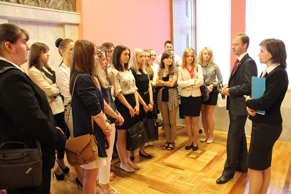 В Овальном зале оказались будущие госслужащие – студенты специальности «Государственное управление», которые воочию наблюдали за тем как претворяются в жизнь важнейшие законотворческие решения, как в рамках существующего регламента депутатами осуществляется регистрация, голосование и обсуждение законопроектов, призванных повысить уровень социально-экономического развития нашего государства, улучшить жизнь белорусских граждан.