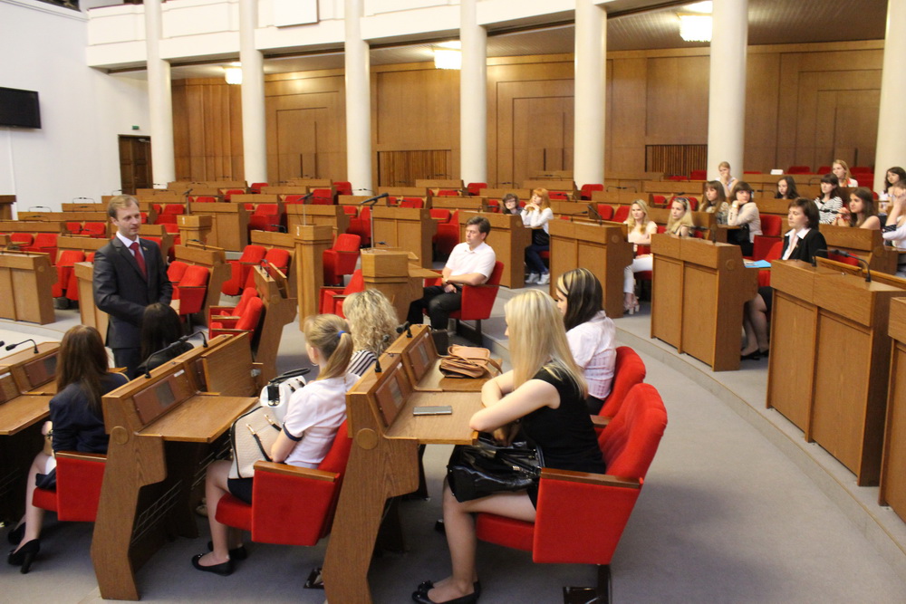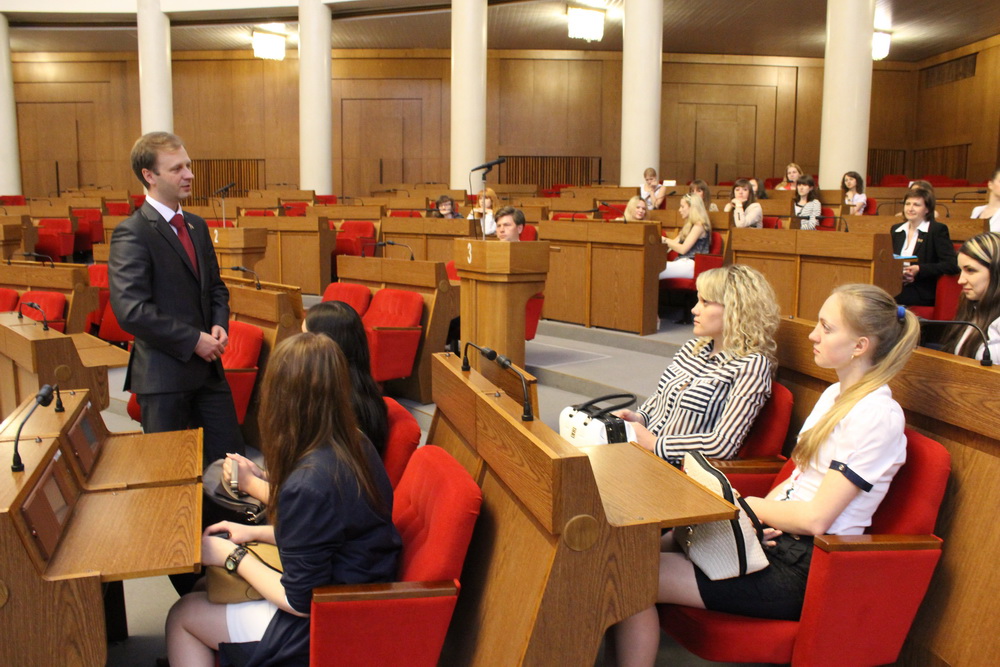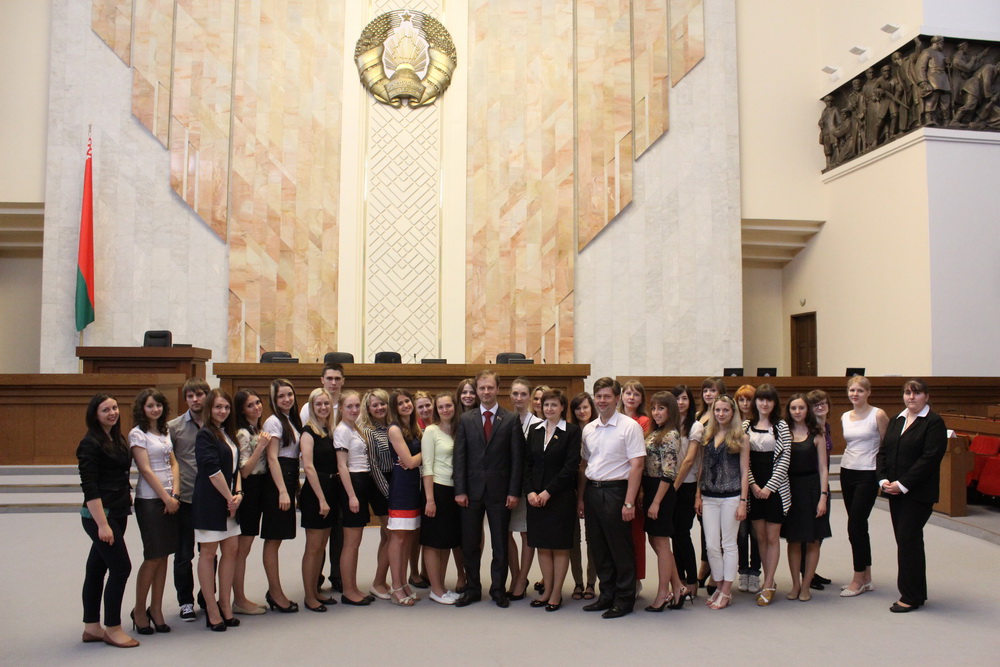 Расположившись в креслах парламентариев и вживаясь в роль народных депутатов, студенты внимали словам Владислава Александровича, который вкратце рассказал о рабочих органах и направлениях деятельности депутатского корпуса, регламенте Палаты представителей. Особое внимание он уделил вопросам законотворчества и участию граждан в процедуре рассмотрения законопроектов.