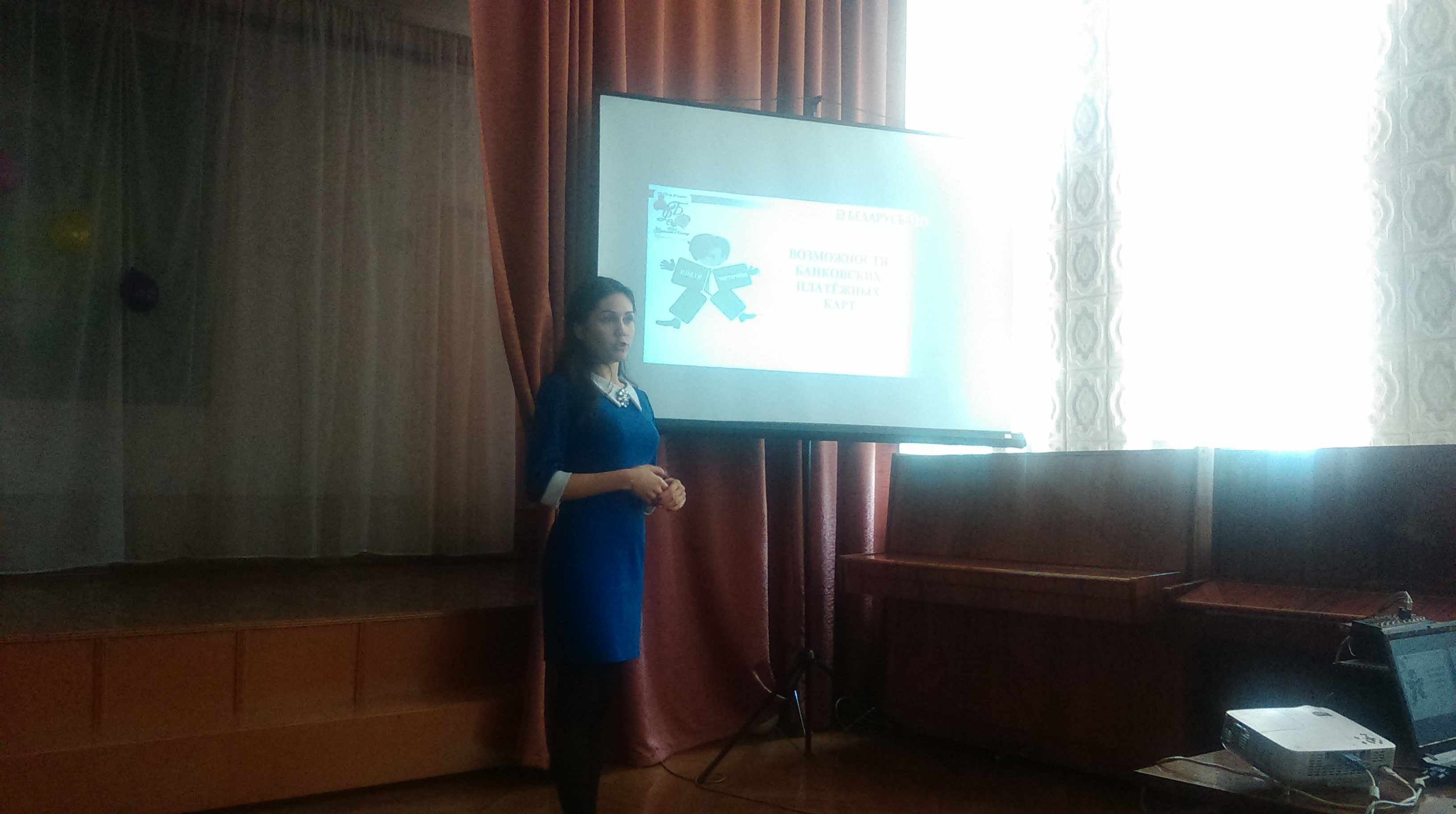 Менеджер центра розничного бизнеса филиала №300 – ГОУ ОАО «АСБ Беларусбанк» Косенко Валентина Анатольевна информировала школьников и учителей школы о банковских продуктах и услугах и акцентировала внимание на необходимости осуществлять сбережения на случай непредвиденного снижения уровня дохода или возникновения непредвиденных расходов, несмотря на то, что такие ситуации вероятны даже в благоприятные периоды экономического развития страны.