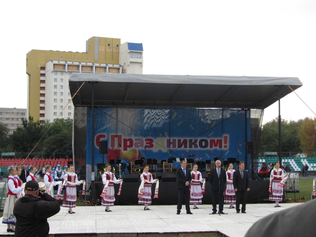 23 сентября 2016 года в Гомеле на стадионе завода «Гомсельмаш» прошли праздничные мероприятия, посвященные Дню машиностроителя. Студенты и преподаватели кафедры финансов и кредита приняли участие в праздничных мероприятиях, а также посетили выставку техники, выпускаемой ОАО «Гомсельмаш». На фото – старший преподаватель кафедры финансов и кредита Шердакова Татьяна Александровна