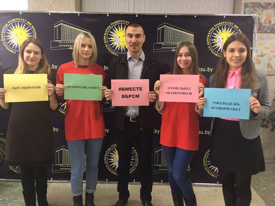 03 марта 2017 в ГГУ имени Ф. Скорины волонтерским отрядом «Дарим Улыбки» была организована акция «Мы говорим наркотикам «НЕТ!», которая прошла в рамках Международного дня борьбы с наркоманией и наркобизнесом. Был проведен ряд профилактических мероприятий, направленных на предотвращение употребления наркотических средств в студенческой среде.