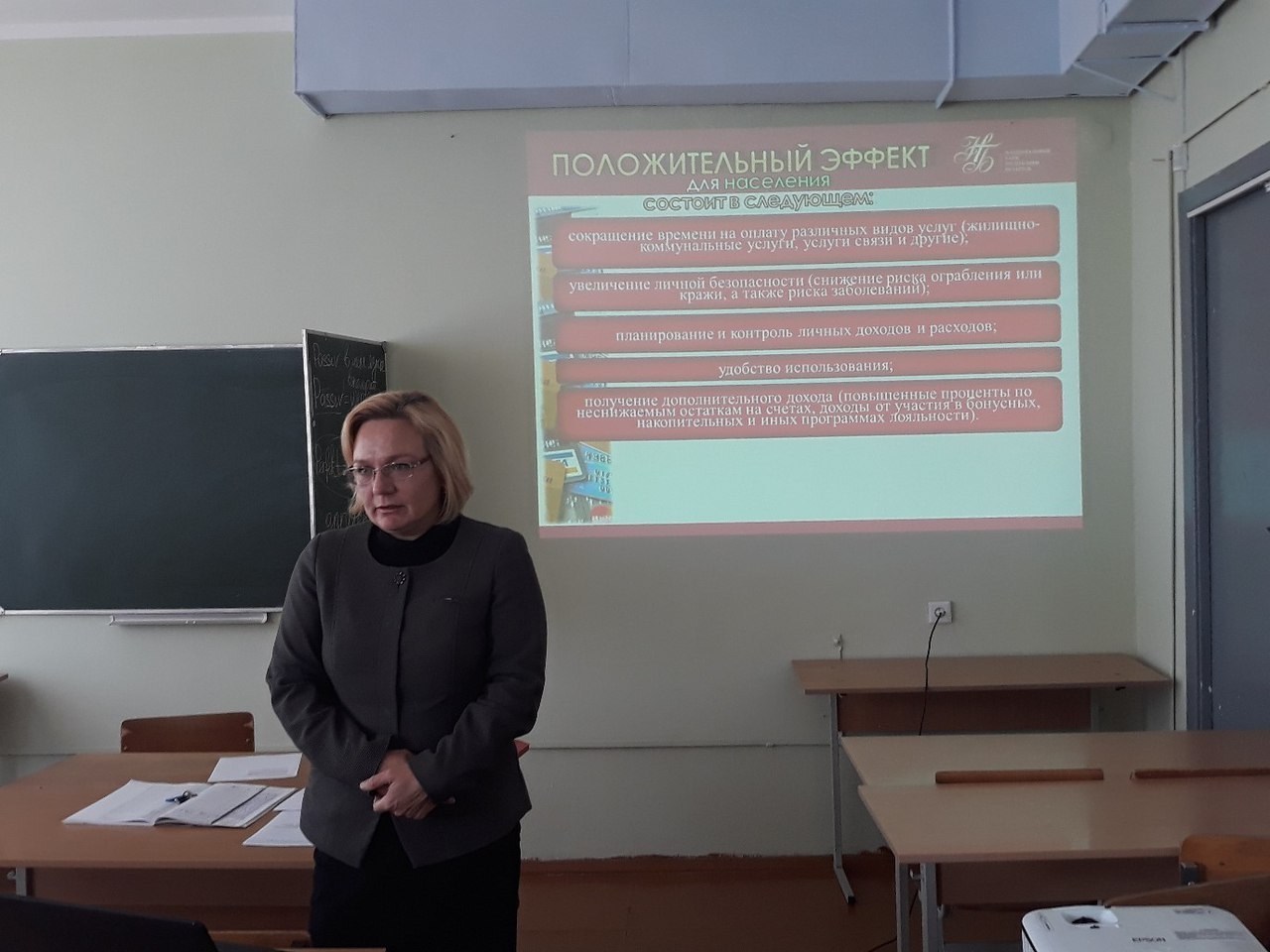 В соответствии с графиком встреч с Главным управлением по Гомельской области Национального банка Республики Беларусь по повышению финансовой грамотности для студентов экономического факультета и бизнес-школы «Стартап-ГГУ» с лекцией для студентов гр.ФК-21 на тему «Платёжные карточки» выступила заместитель начальника экономического управления ГУ по Гомельской области НБ РБ Кожемякина Наталья Александровна.