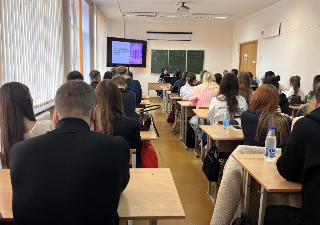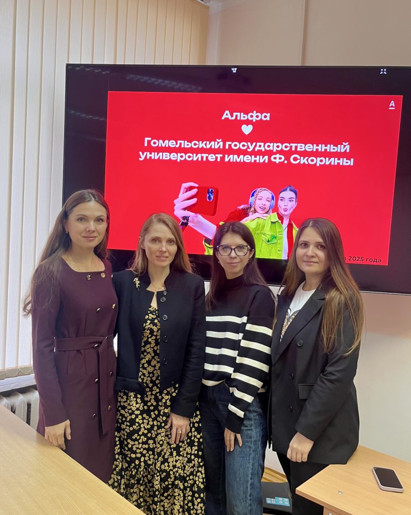 21 октября 2025 на экономическом факультете ГГУ им. Ф. Скорины прошла профориентационная встреча с представителями ЗАО «Альфа-Банк». В ходе мотивационной встречи со студентами 2-4 курсов специальности «Финансы и кредит» обсуждались вопросы прохождения производственной практики и последующего трудоустройства выпускников в Банке. Спикеры — менеджер по управлению дистанционным обслуживанием Мария Полховская и ведущий специалист по подбору персонала Ирина Чудинова. Организатор встречи — кафедра финансов и кредита.