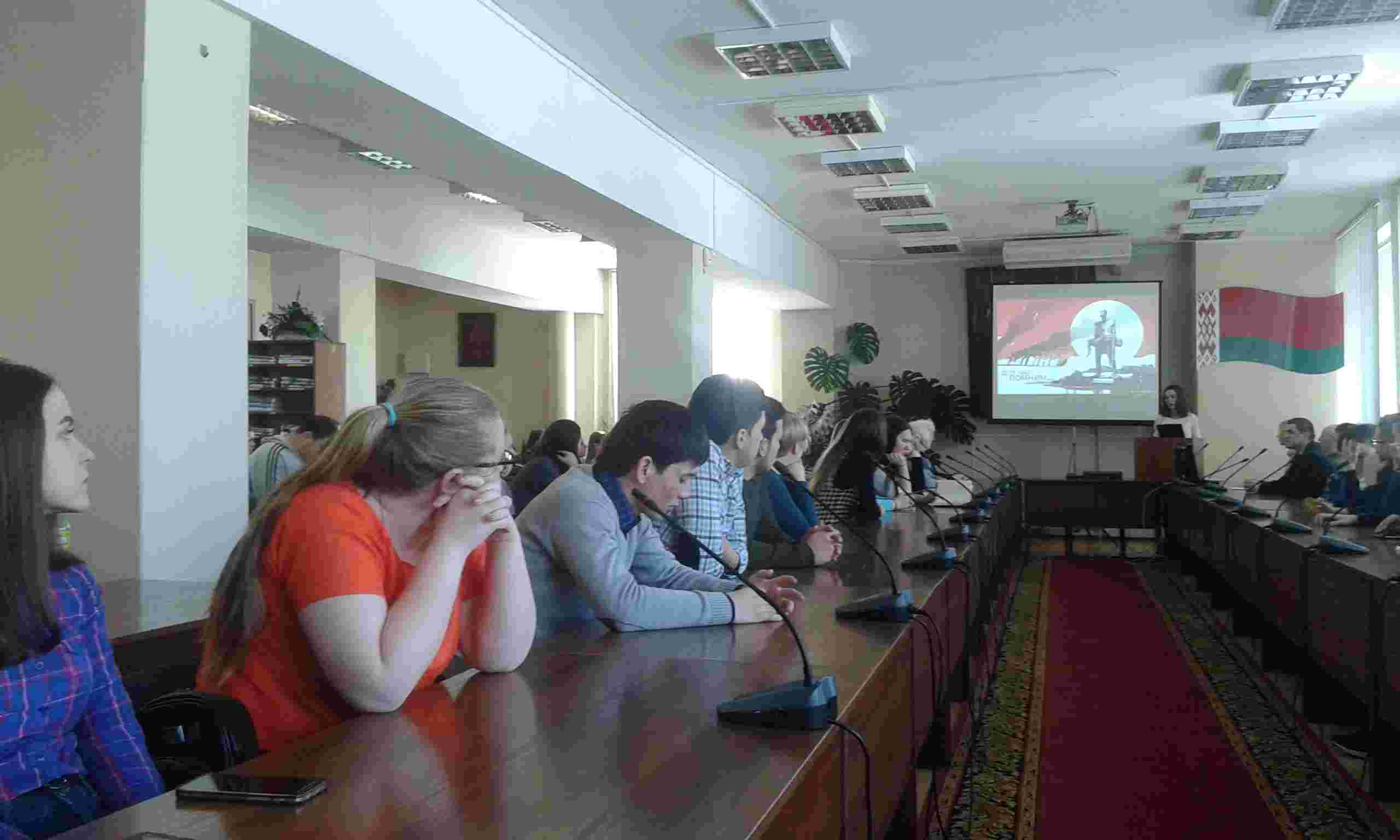 22 марта студенты группы ГУ-11 вместе с другими первокурсниками приняли участие в университетском мероприятии, посвященном годовщине трагедии в Хатыни. 75 лет прошло со дня уничтожения белорусской деревни Хатынь карательным отрядом за убийство трех немецких военнослужащих, попавших в засаду партизанской бригады Василия Воронянского. По отношению к жителям близлежащей деревни, заподозренным в оказании помощи партизанам, был применен принцип коллективного наказания – 149 жителей Хатыни были заживо сожжены или расстреляны. Половину убитых составили дети до 16 лет. Из взрослых выжил только 56-летний кузнец Иосиф Иосифович Каминский, которому не удалось спасти своего сына Адама и он скончался на руках у отца. Иосиф Каминский с сыном Адамом стали прототипами знаменитого памятника в мемориальном комплексе Хатынь, открытом на месте трагедии.