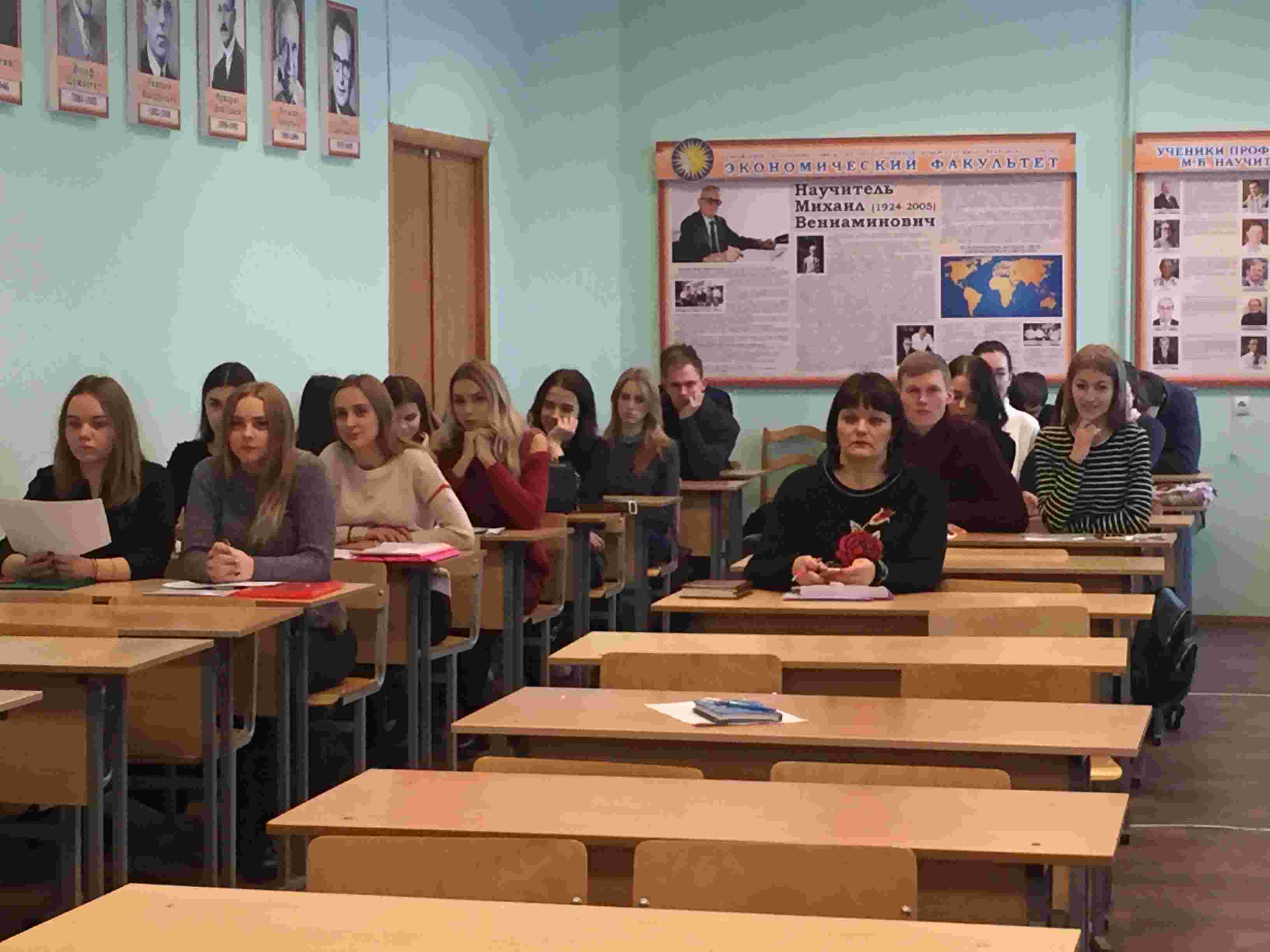 На кафедре экономической теории и мировой экономике прошел кураторский час с белорусскими и иностранными студентами, посвященный проблемам адаптации иностранцев к современному белорусскому социуму, успешному освоению учебного материала и участию в общественной жизни факультета и университета. Мероприятие провела доцент кафедры экономической теории и мировой экономики Дмитриева Наталья Юрьевна.