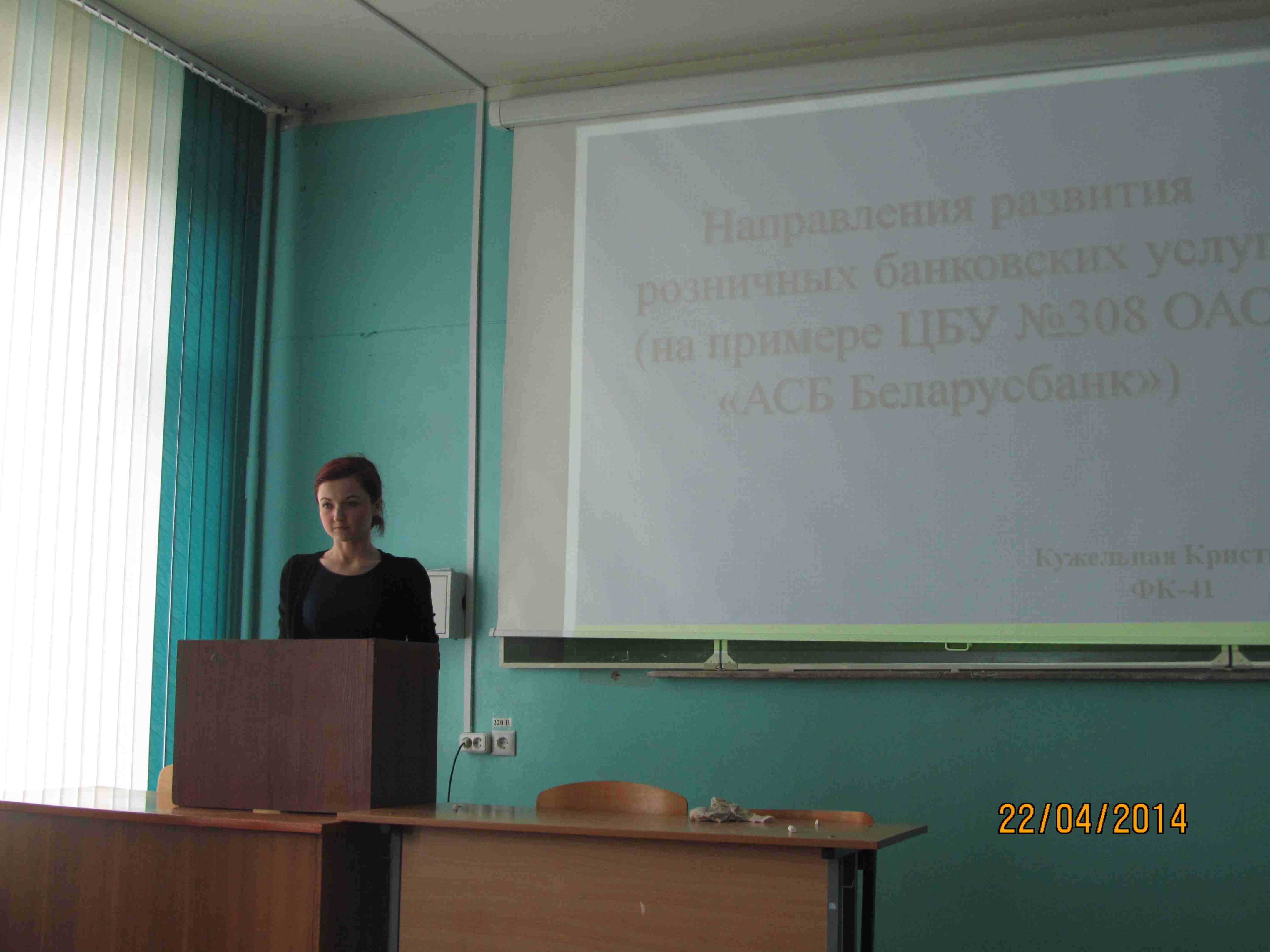 22 апреля 2014 года на кафедре финансов и кредита прошло заседание секции № 2 «Проблемы развития финансово-кредитных отношений в Республике Беларусь» 43-ей университетской студенческой конференции «Актуальные проблемы экономического развития Республики Беларусь»