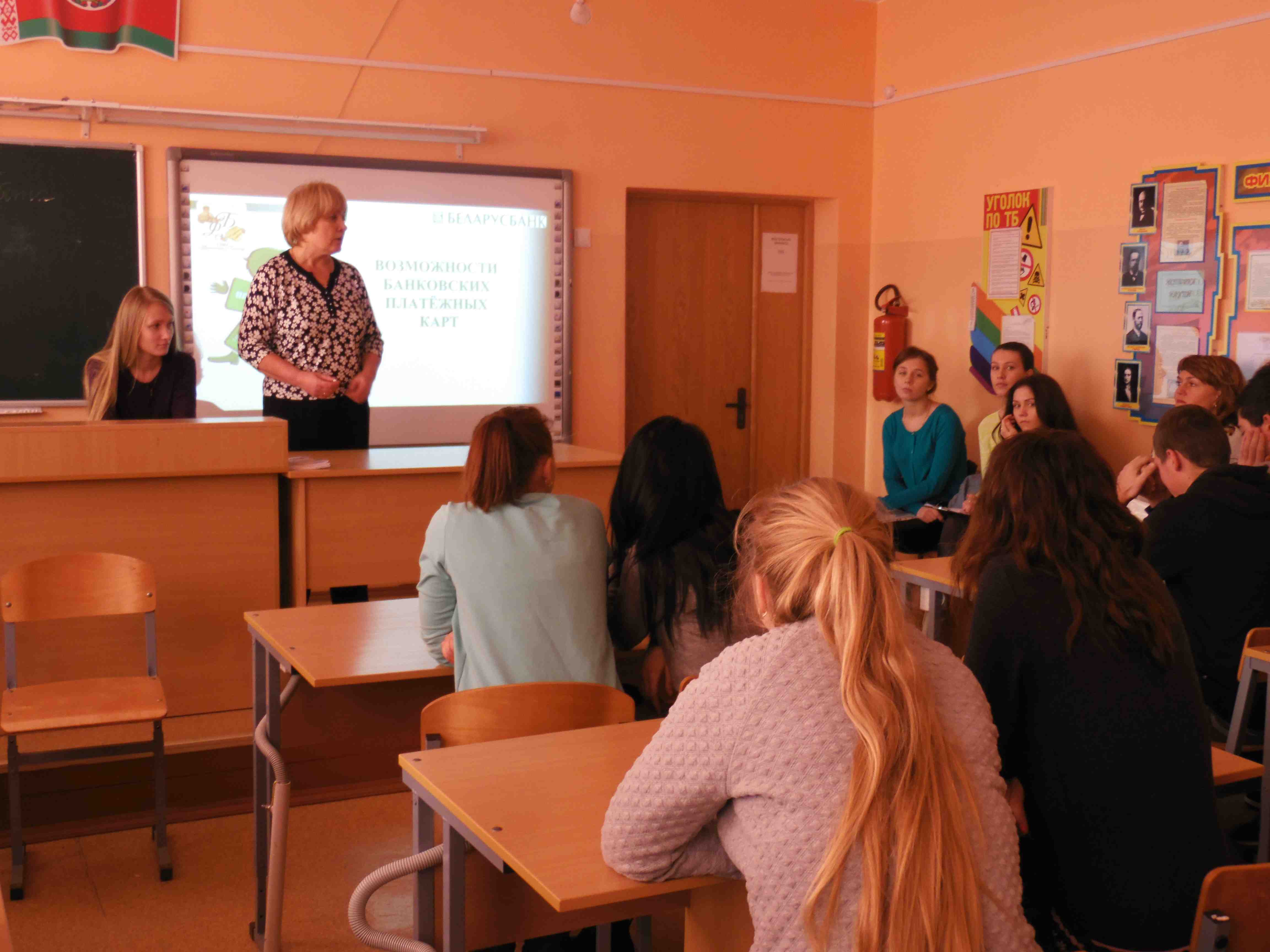 Федосенко Л.В. рассказала о вкладе студентов в реализацию программы «Повышение финансовой и банковской грамотности населения». Васильева Г. В. и менеджер центра розничного бизнеса Косенко В.А. подробно проинформировали слушателей о возможностях банка в сфере розничного бизнеса и особо акцентировали внимание на льготном кредитовании банком будущих студентов. Кроме вопросов по повышению финансовой грамотности были затронуты вопросы профориентации потенциальных абитуриентов, школьники из первых уст узнали о возможностях получения высшего образования в ведущем вузе Гомельской области — Гомельском государственном университете имени Франциска Скорины.