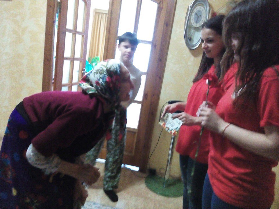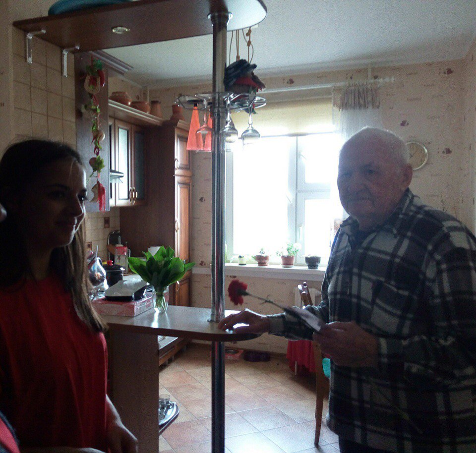 Активисты волонтерского отряда «Дарим улыбки» экономического факультета гр. ФК-11 и ФК-31 в преддверии праздника Дня Великой Победы 6 мая посетили уважаемых ветеранов Великой Отечественной войны, вручив им поздравительные открытки и букеты цветов как символ жизни и процветания: Анищенко Ивана Филипповича, Никитенко Михаила Корнеевича, Карпова Владимира Лукьяновича, Кацуро Леонида Ивановича, Ульянова Михаила Алексеевича, Старосельского Петра Николаевича, Карась Ольгу Тихоновну, Кондрусева Ивана Дмитриевича, Филипчука Леонида Ивановича, Даниличева Серафима Ивановича, Мазурову Ольгу Дмитриевну, Горло Пелагею Никитичну, Гуриновича Павла Яковлевича, Дробышевскую Екатерину Петровну, Корпачева Нину Степановну, Бессчетнову Маю Константиновну, Мельникову Лидию Павловну, Сафронову Таисию Васильевну.