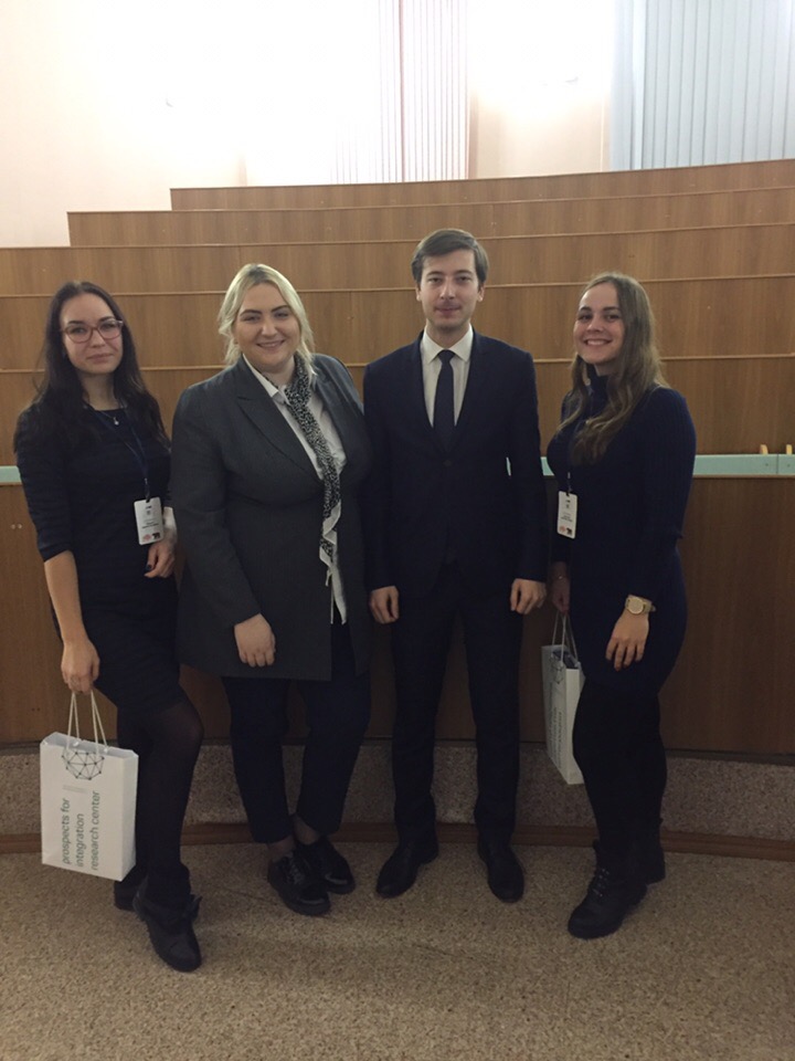 Студентки 4 курса экономического факультета специальности «Экономика и управление на предприятии» Клепикова Юлия и Шарова Дарина стали участниками российско-белорусского молодежного конкурса «Союзная лига дебатов», организованного Центром изучения перспектив интеграции при поддержке Фонда Президентских грантов. Конкурс направлен на развитие навыков командной работы у молодежи России и Беларуси, аналитического мышления, культуры конструктивной дискуссии о сложных вопросах. Для участия в конкурсе студентки прошли отборочный этап, написав эссе «Через инновации к успеху» и записав видео, в котором рассказали о значимости Союзного государства. Помощь и содействие в этих работах оказала доцент кафедры экономики и управления, к.э.н., доцент Ольга Валерьевна Арашкевич. Первый этап конкурса прошел в Минске 1-2 ноября на базе Белорусского государственного экономического факультета, где в дебатах принимали участие 24 команды из городов России и Беларуси. 1 ноября для всех участников провели тренинг, на котором рассказали, что такое дебаты, как к ним можно подготовиться, какова должна быть структура выступления и как заставить судей поверить их аргументам. Завершился день экскурсией по городу-герою Минску. 2 ноября прошли сами дебаты, где команде нашего университета пришлось рассуждать на темы о создании «постоянного Парламента Союзного государства» и «официальной идеологии Союзного государства» в роли открывающей и закрывающей оппозиции. Второй этап конкурса пройдет 15-16 ноября уже в Москве.