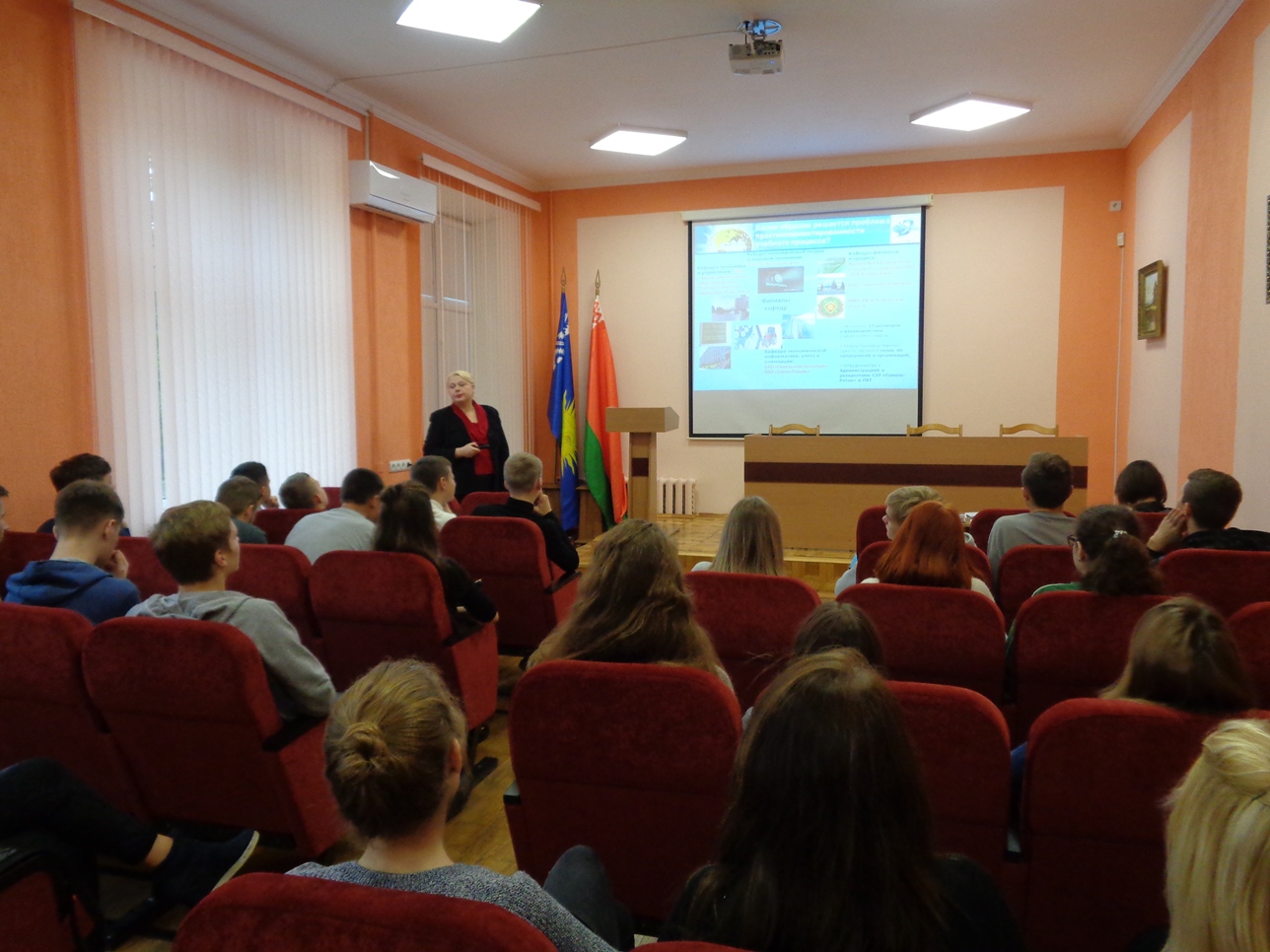 1 ноября, наш университет принимал гостей из Мозыря — учащихся 14 школы. С презентацией об университете перед школьниками выступил декан факультета довузовской подготовки Дмитрий Ходанович, представители факультетов раскрыли преимущества обучения в нашем вузе. Экономический факультет представляла Анна Казущик, рассказавшая будущим абитуриентам о преимуществах и перспективах обучения по экономическим специальностям в ГГУ имени Ф.Скорины. возможном трудоустройстве, а также представившая новые специальности «Бизнес-администрирование» и «Экономическая информатика», набор на которые планируется осуществлять в 2019 году.