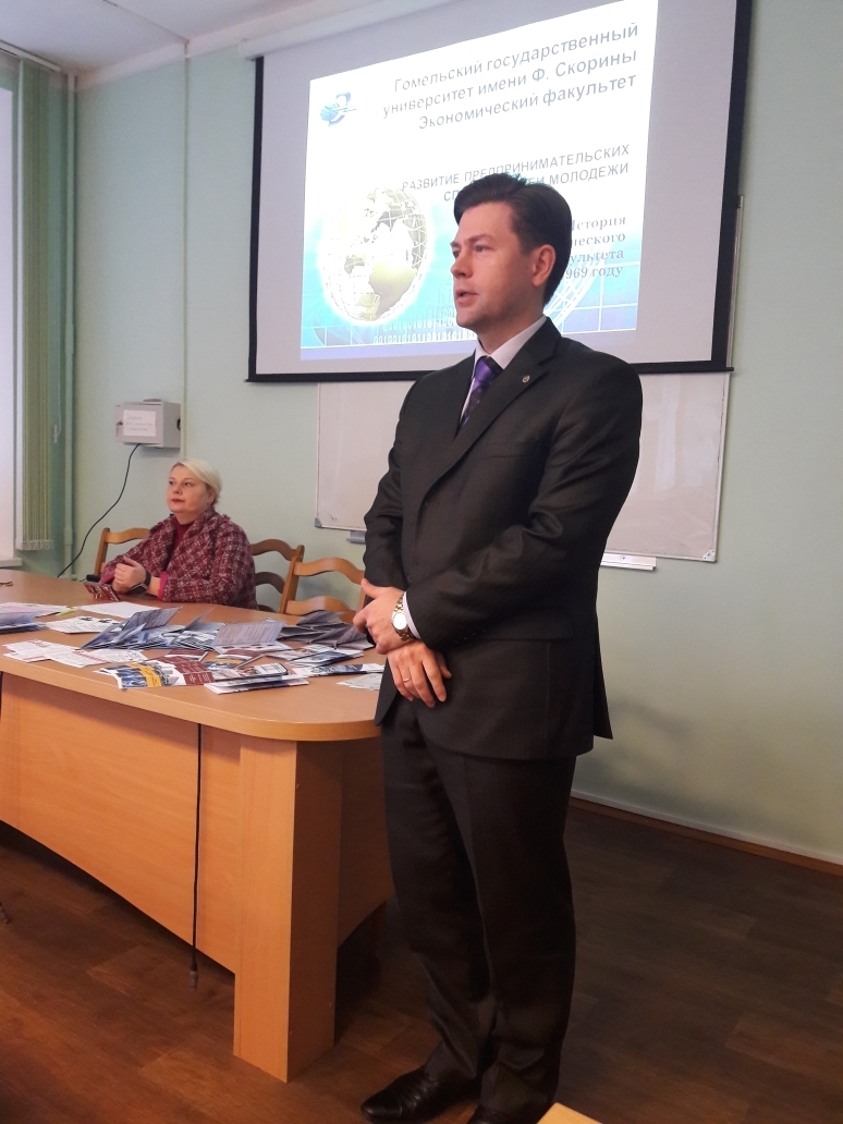 С приветственным словом к присутствующим обратился декан экономического факультета Костенко Андрей Константинович, который акцентировал внимание на преимуществах обучения в ГГУ имени Ф. Скорины как ведущем региональном ВУЗе Гомельской области и преимуществах обучения на экономическом факультете.