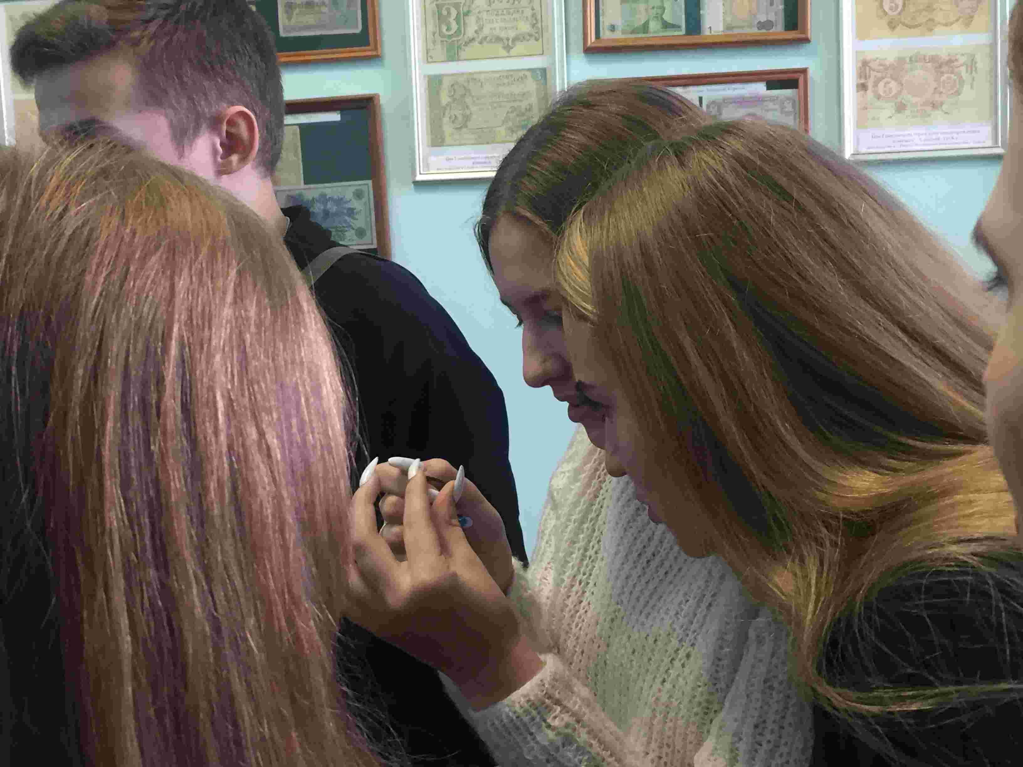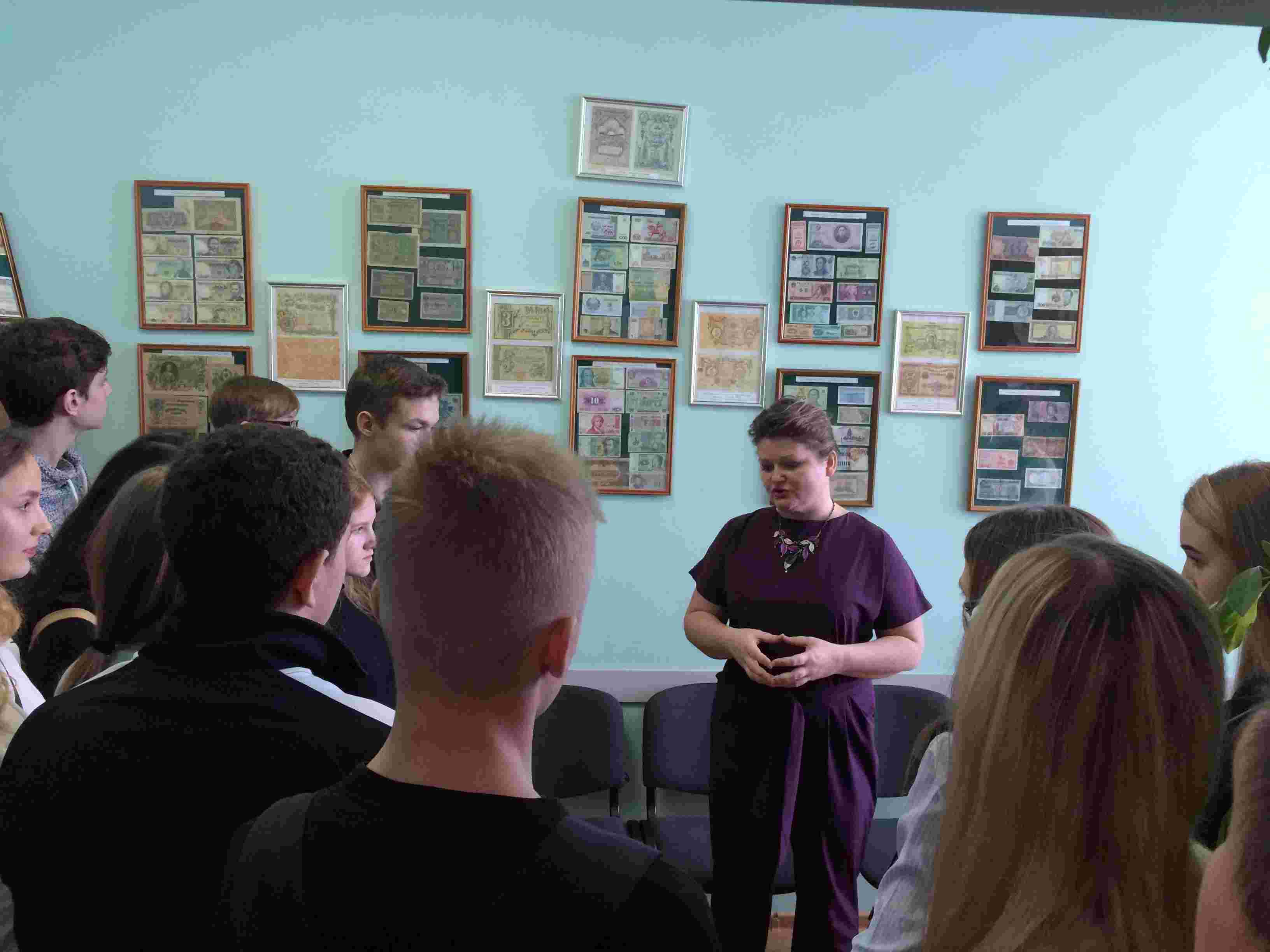 Приятным бонусом для участников зимнего лагеря стало посещение музея денег на кафедре финансов и кредита. Увлекательное путешествие по истории денег провела заведующий кафедрой Ольга Башлакова. Школьники познакомились с интересными экземплярами экспозиции – монетами-чашами, монетами-дельфинами, деньгами Гомельского земства.