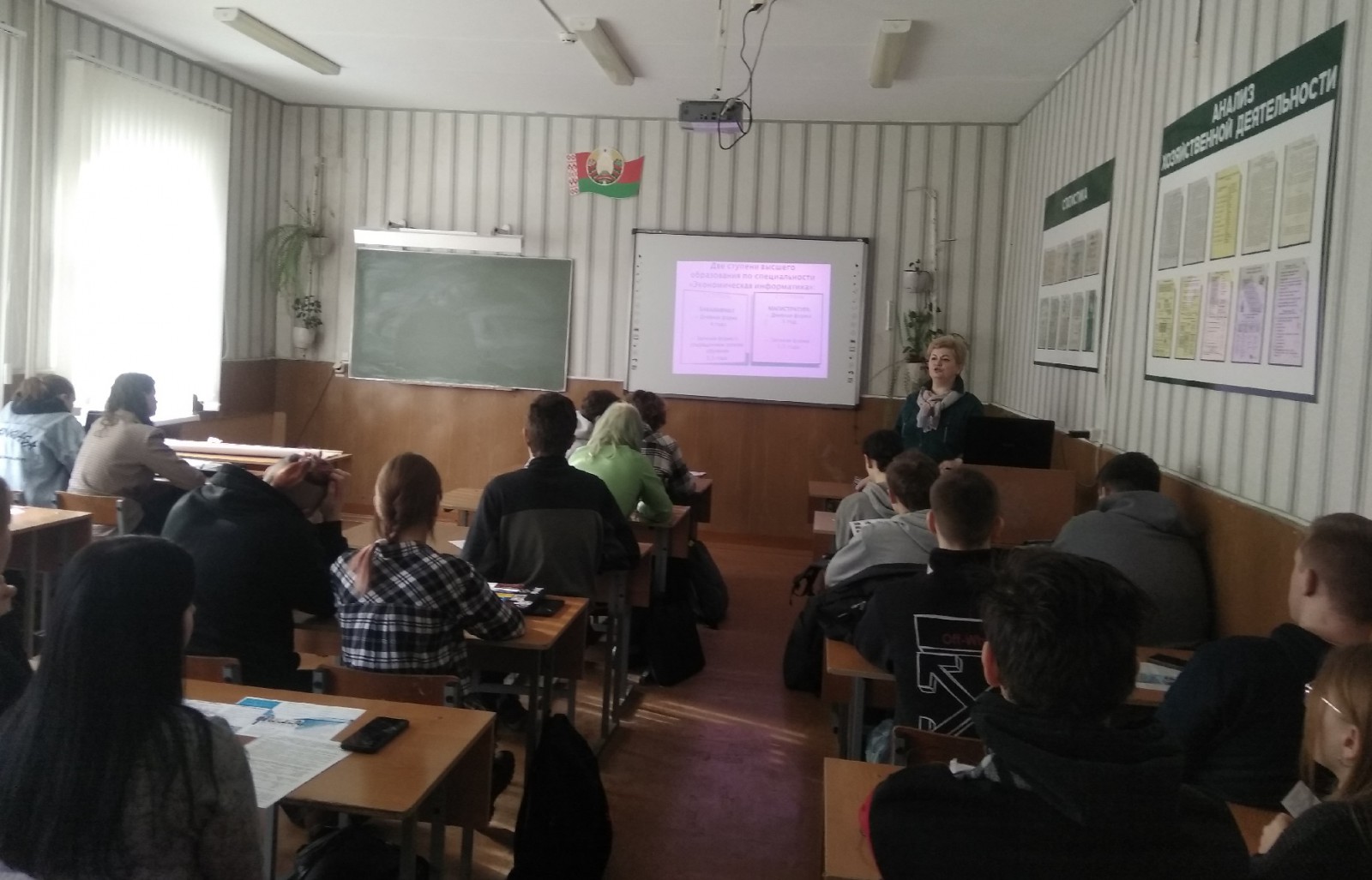 Учащимся было рассказано о плюсах учебы в Гомельском государственном университете имени Франциска Скорины, особенностях специальности «Экономическая информатика», изучаемых дисциплинах, стоимости, сроках и процессе обучения в вузе. Ребята задавали вопросы про проходные баллы прошлого года, скидки со стоимости обучения в нашем университете, перспективы трудоустройства после окончания университета.